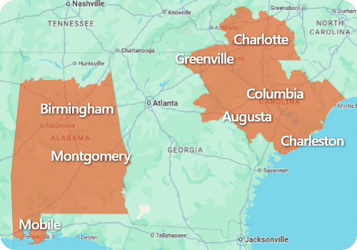 Proudly Serving NC, SC, GA & AL Including - Columbia, Greenville, Augusta, Charlotte, Charleston, and Birmingham