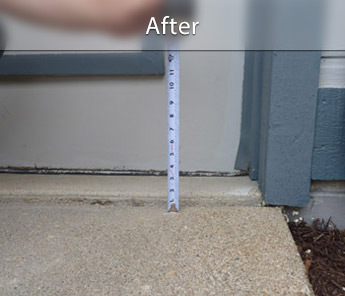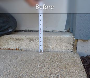 Sinking concrete can create a serious tripping hazard. Here, you can see that by leveling the concrete at the foot of the front door to this home, tripping hazards can be eliminated and safety can be improved.