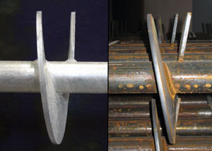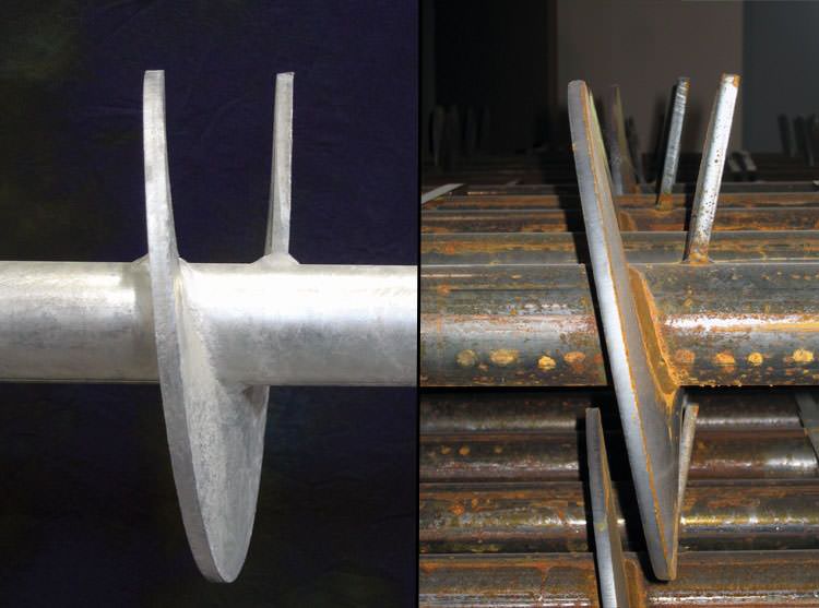 (Left) A foundation helical pier design that meets ICC (International Code Criteria) standards, with a true helix shape.