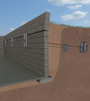 Heavy-duty, galvanized earth anchors are embedded in stable, undisturbed soil outside your foundation wall. Each anchor is connected by a steel rod to a wall plate that provides clamping pressure against the inside of the foundation wall. This method also offers the potential to straighten the wall back to its original position.