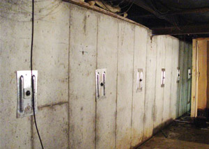(Below) The same foundation wall repaired permanently with foundation wall anchors.