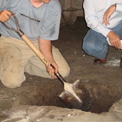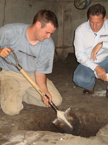 At the beginning of the installation, our team of in-house crawl space repair contractors will excavate a 2' square, 2' deep hole at each SmartJack® location. Each of these holes will be prepared with engineered fill consisting of tightly compacted crushed stone.