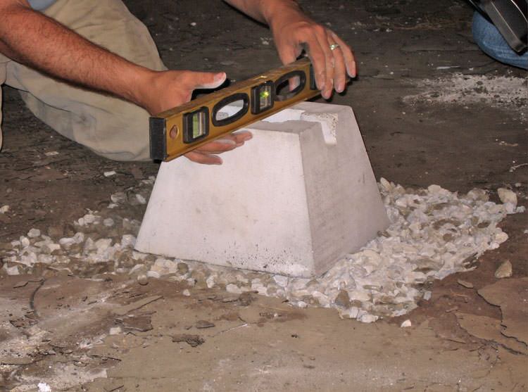To address the issue of poor supporting soils, each crawl space jack distributes the weight of the home through a precast concrete footing and a base of engineered fill material.