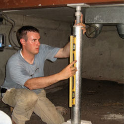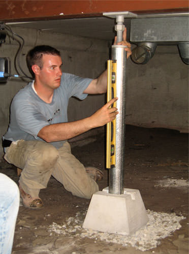 Each crawl space jack post is assembled in your crawl space. The top of the crawl space jack is mounted against the girder, and the installation is carefully plumbed.