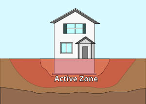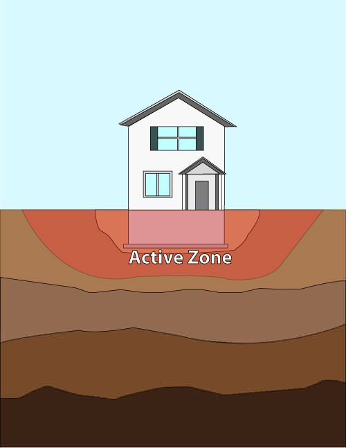 The soil you should be most concerned about is known as the active zone immediately around and underneath the house. This soil is most affected by changes in moisture and climate -- and the source of most foundation problems. The active zone may vary from a few feet below the surface to more than 30' below grade, depending on what area of the country you live in.